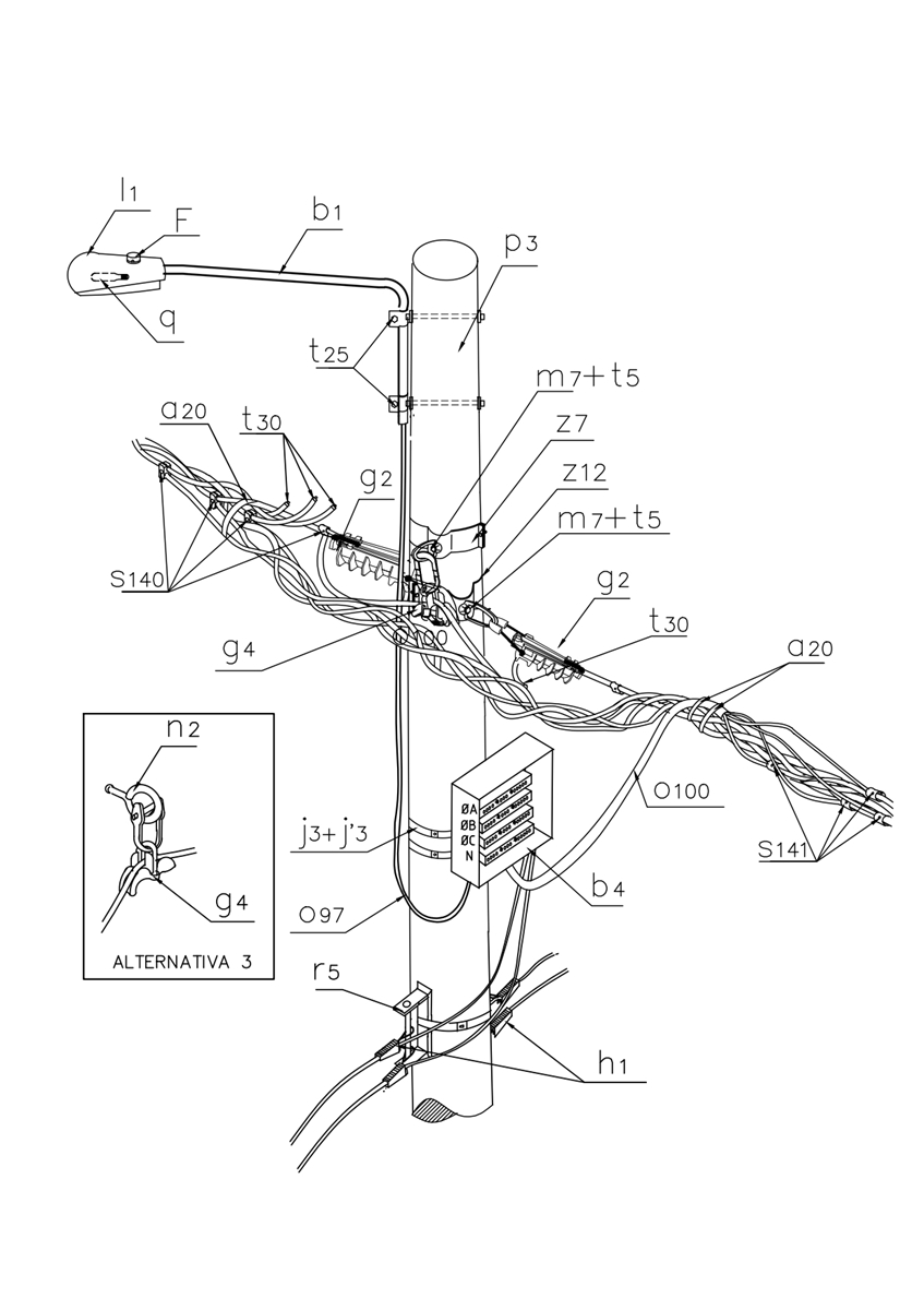 | g 4 | 1 | 274313 | ET-355 | Grapa de suspensión para cable trenzado de B.T. |