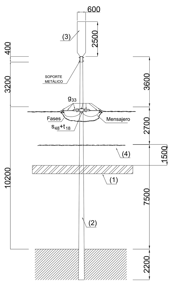 (3) Antena radioeléctrica mimetizada fijada en la cima del poste. Las dimensiones son una referencia.
