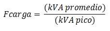 - Cálculo del Factor de Carga: el factor de carga relaciona la potencia promedio con la potencia máxima del cliente a través de la ecuación que se muestra enseguida: