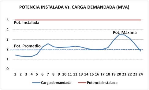 Factor de carga: Es la relación entre la carga promedio en cierto período de tiempo y la carga pico durante este período de tiempo. Indica el grado con que la carga pico se sostiene en el intervalo. Este factor se puede calcular con base en las curvas de duración de carga.