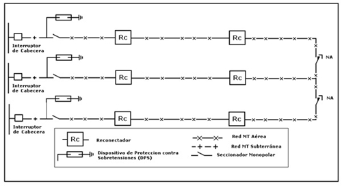 Los circuitos primarios de distribución se construirán en anillo abierto, mediante la utilización de suplencias con equipos de operación bajo carga, con telecontrol, con otros circuitos cuando se presenten eventos de contingencia, mantenimiento u operativas.En los casos que aplique, sobre la red principal del circuito deberán instalarse como mínimo dos (2) equipos de operación bajo carga (Reconectadores normalmente cerrados) que seccione dicha red en tres (3) tramos, esto con el fin de garantizar la selectividad y operación de la red en caso de fallas y/o mantenimiento.