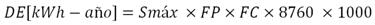 Esta variable se calcula con ayuda de la demanda máxima, el factor de potencia y el factor de carga, tal y como lo expresa la siguiente ecuación:Donde: